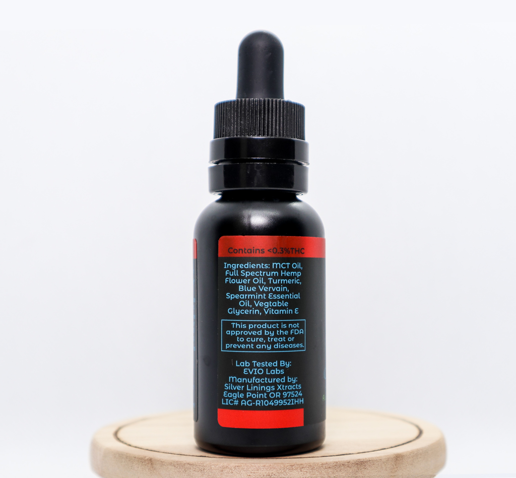 Convenient and portable 30 mL tincture bottle, Sourced from non-GMO industrial hemp grown on our farm in Southern Oregon using natural and sustainable farming practices, Extracted from select hand harvested naturally dried CBD Hemp flower only.